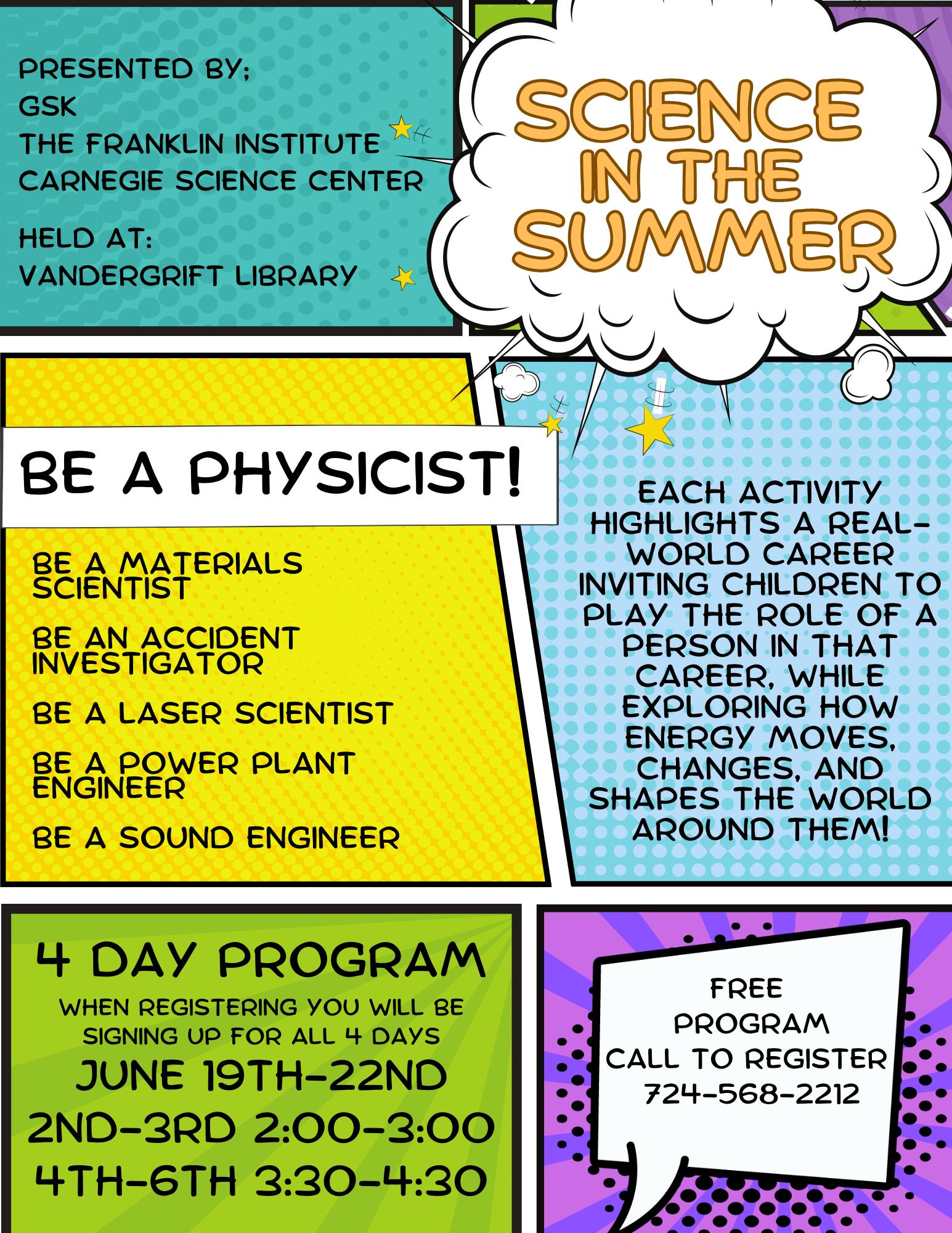 Join us June 19-22 for our Science in the Summer Program with the GSK Franklin Institute Carnegie Science Center