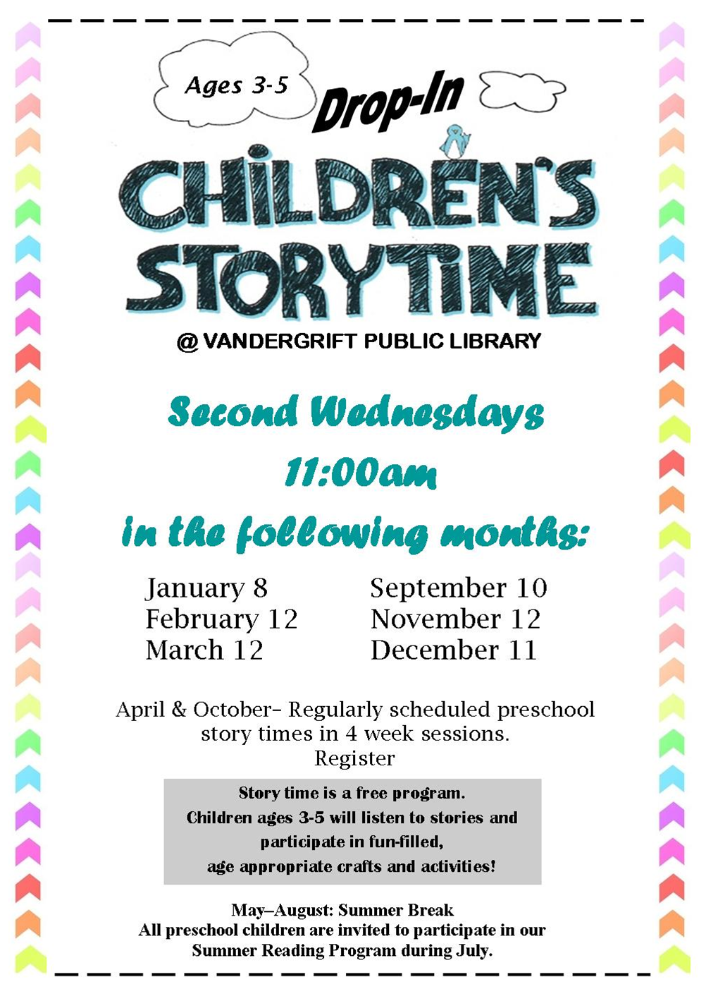 drop-in story time Published November 18, 2013 at 1002 × 1419 in Youth Programs & Events ← Previous Next →